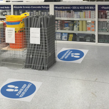 Manufactured from a B1 Fire Rated hard-wearing and durable Vinyl, these square shaped floor graphics come pre-printed with a standing position graphic, within a solid blue circle. A self-adhesive backing provides long lasting adhesion that is suitable for use internally on hard surface floors, carpeted floors and other flat surfaces.